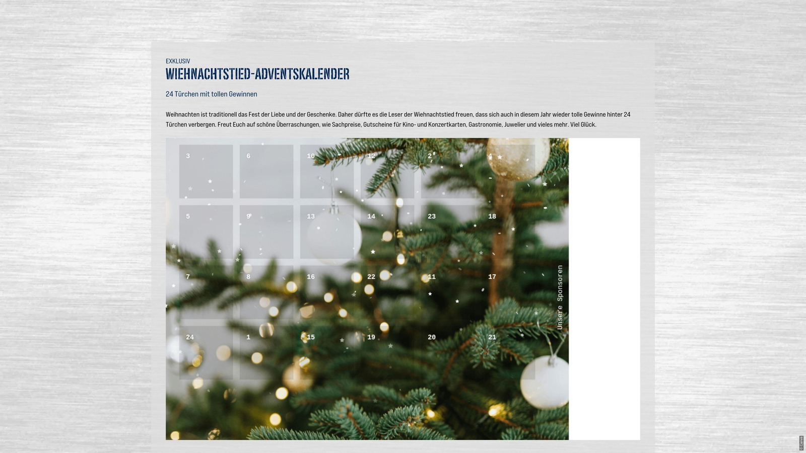 Wiehnachtstied-Adventskalender 2025